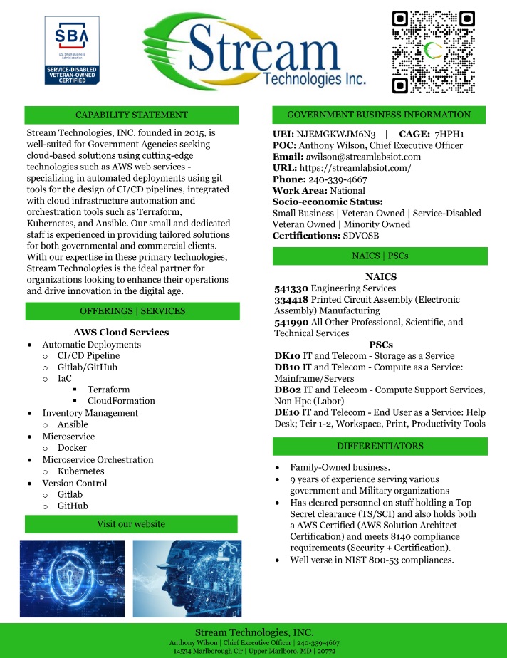 Stream Technologies, Inc is a Service-Disabled Veteran-Owned Small Business